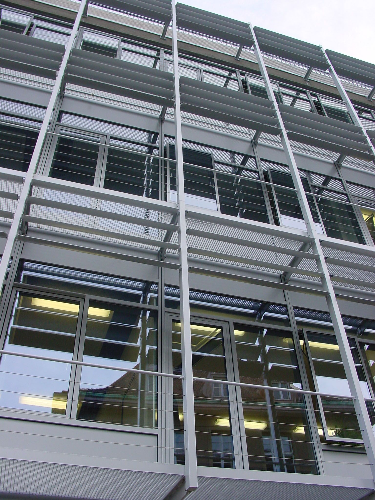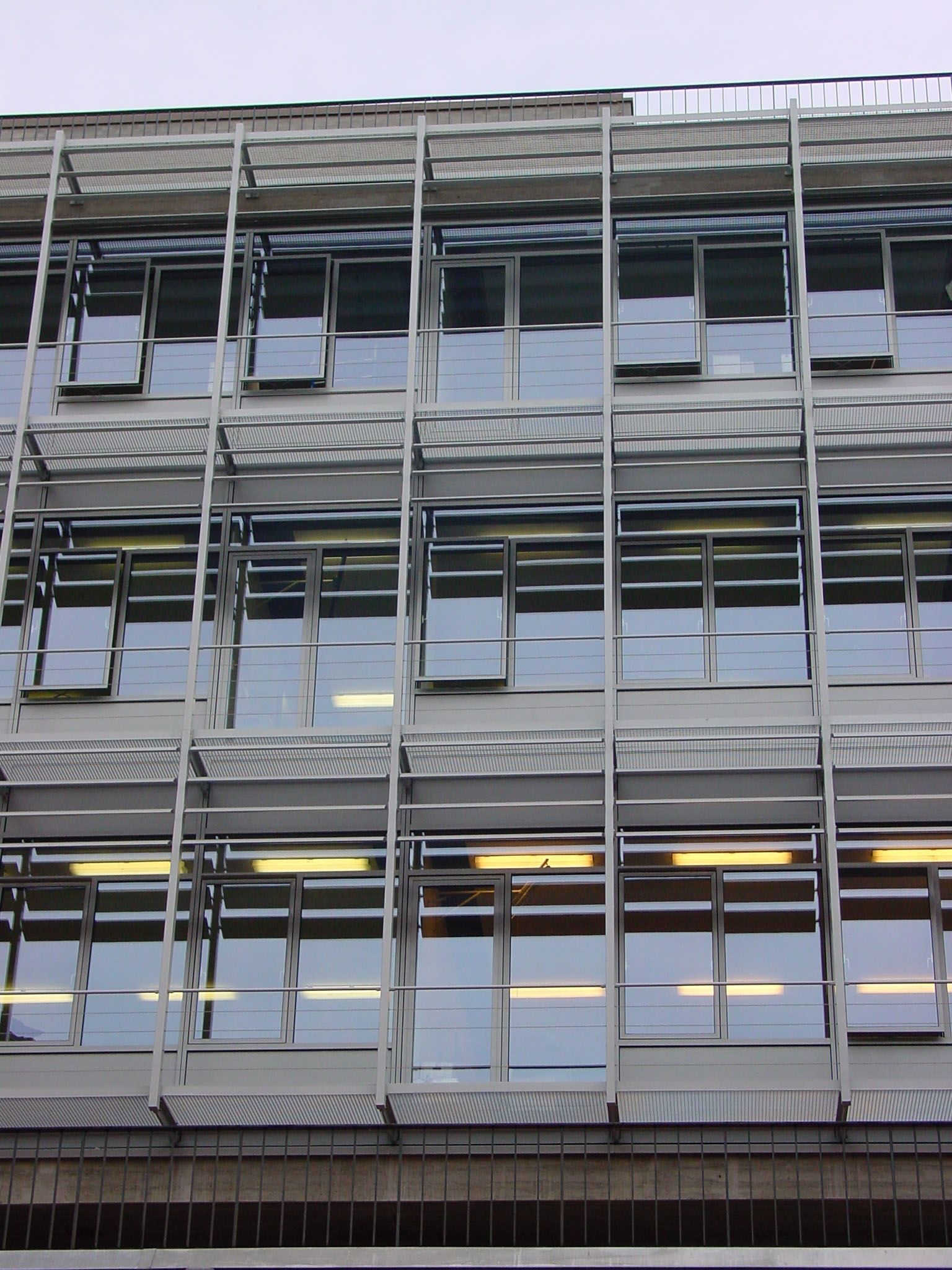 Massnahme: Aluminiumfenster, Blechfassade und Treppenhausverglasung