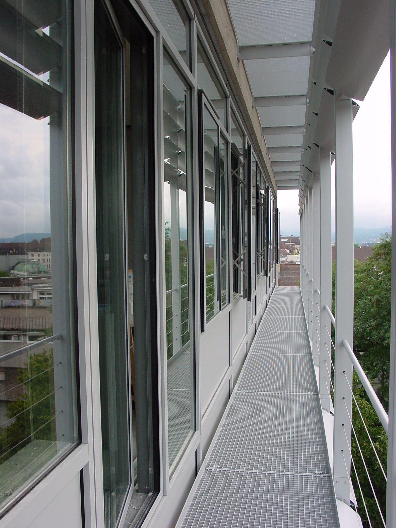 Massnahme: Aluminiumtüre (Messing), CNS-Gittertüren und Geländerelemente