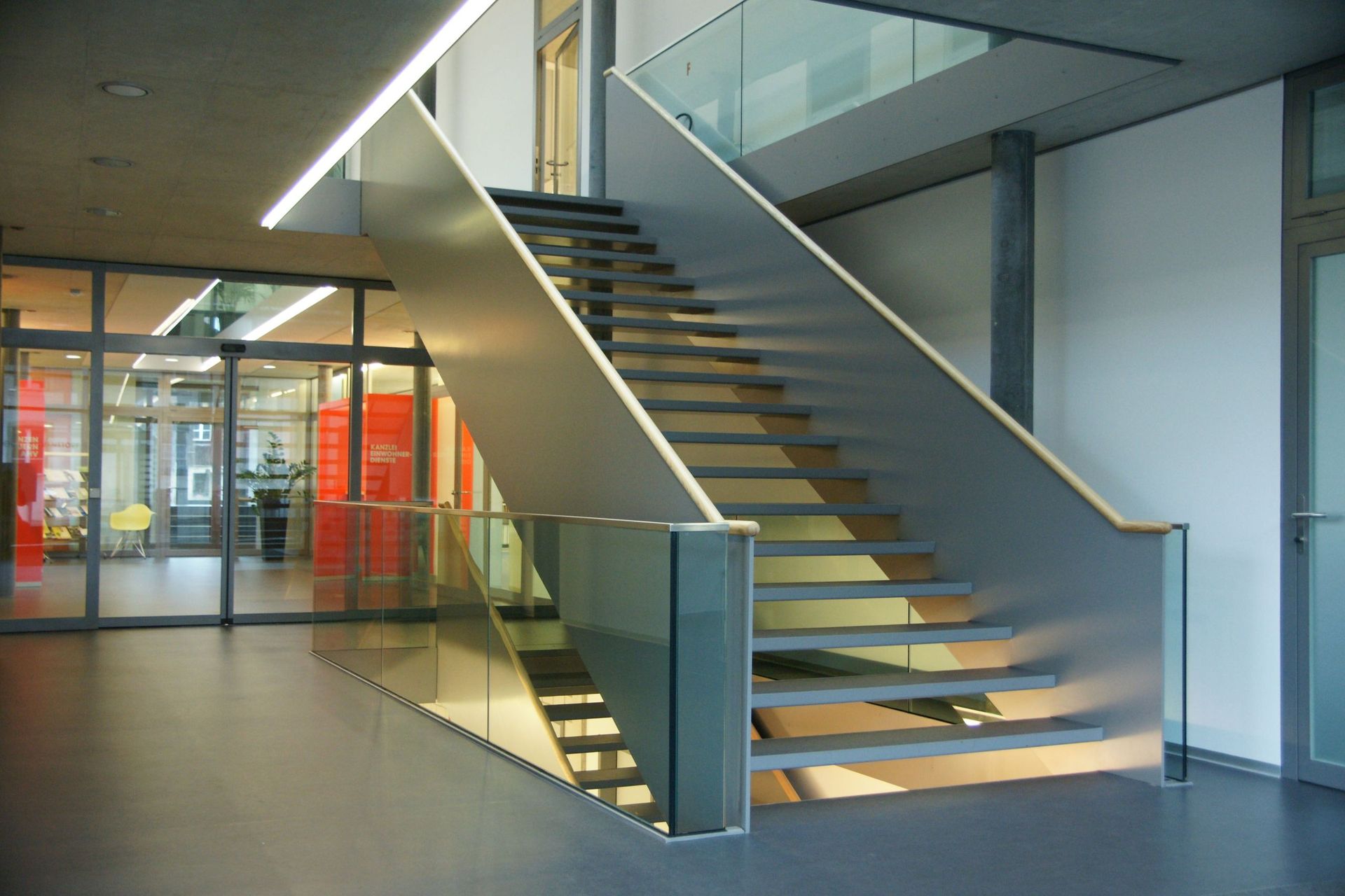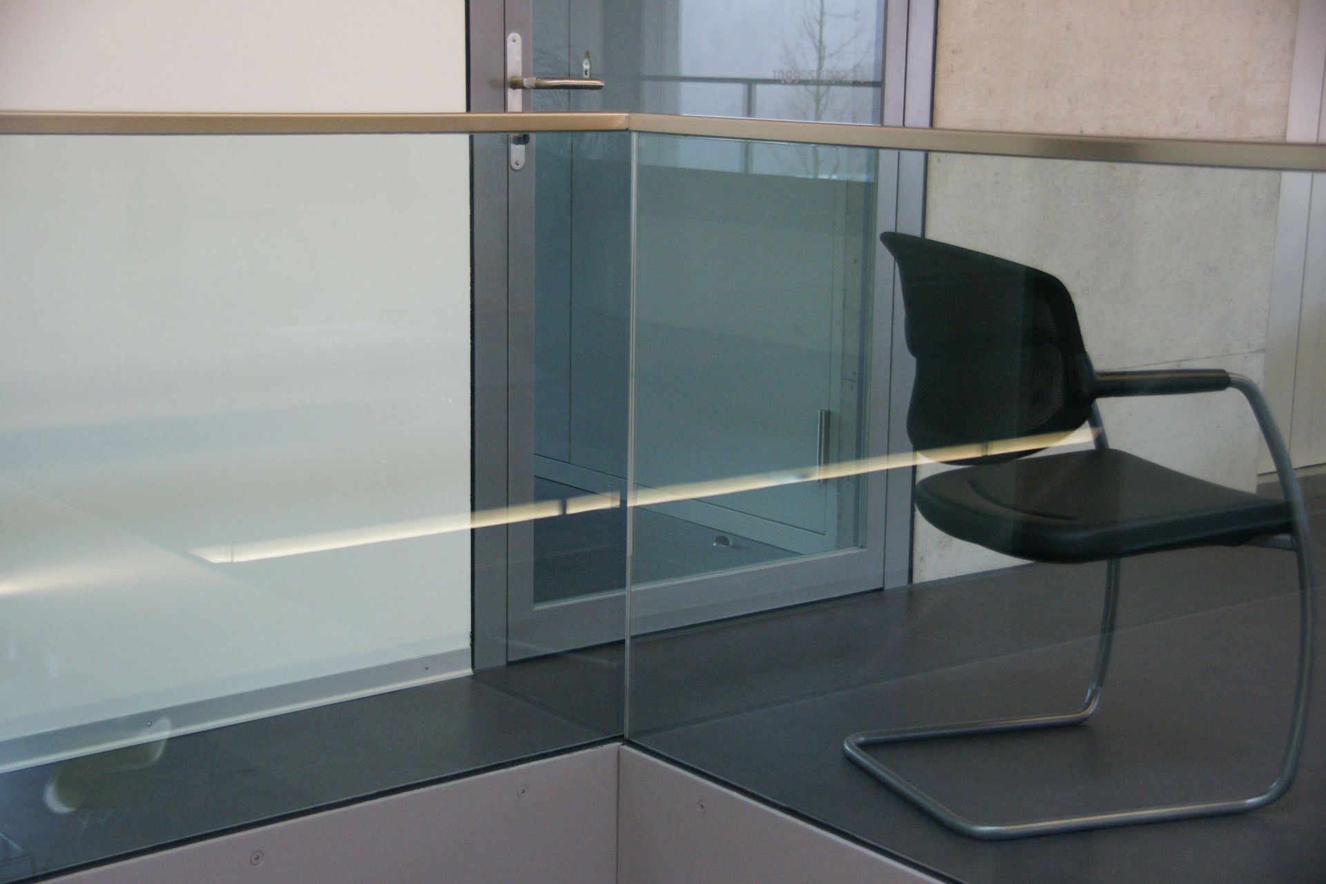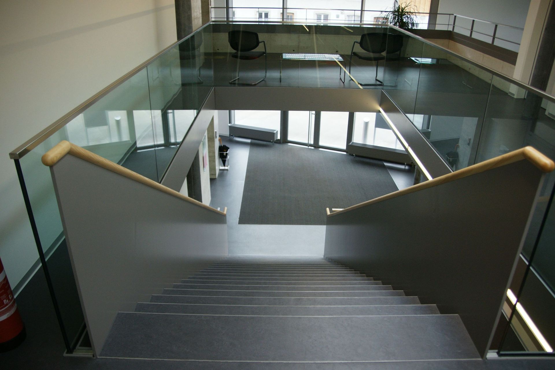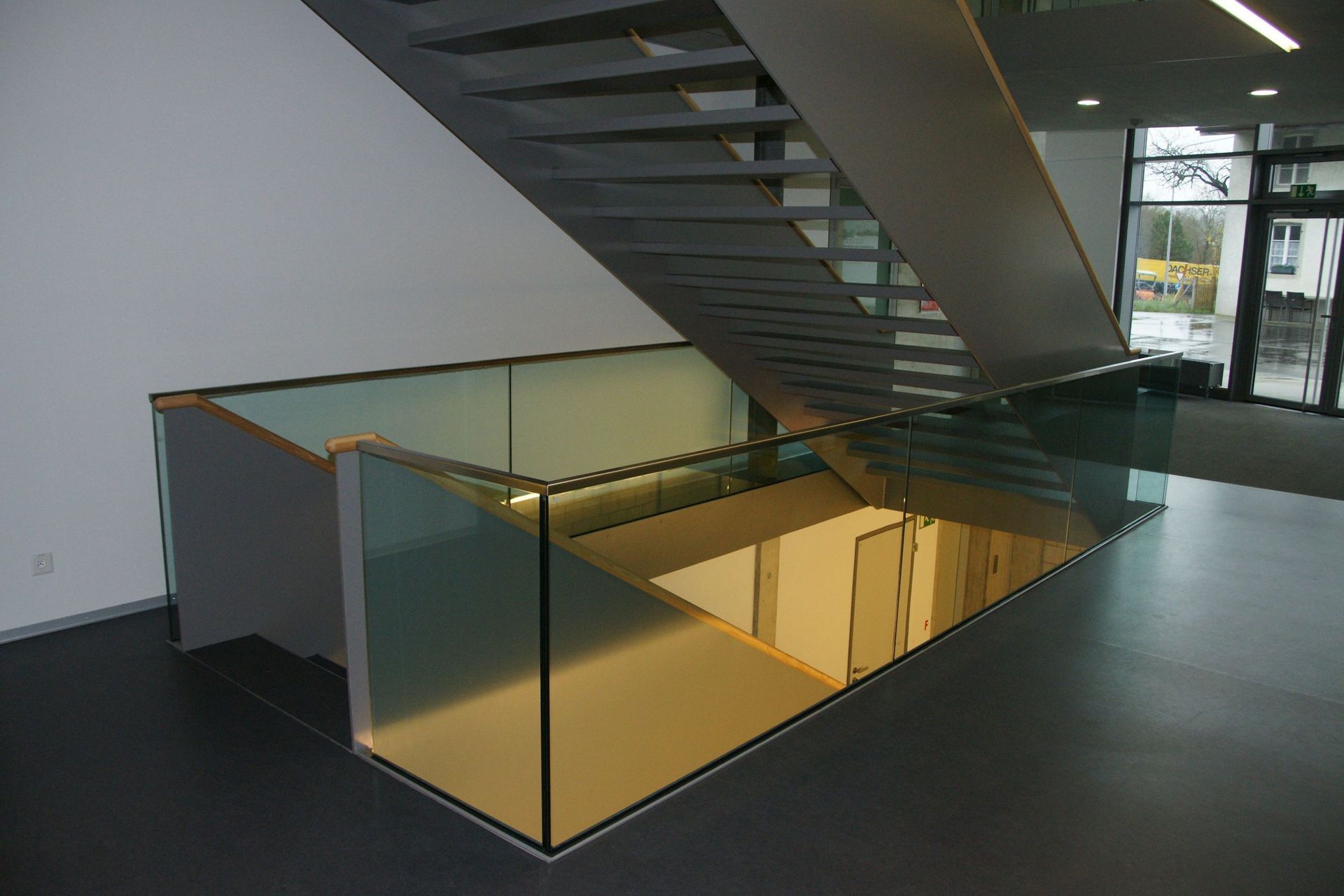 Massnahme: Glasgeländer und Stahltreppe
