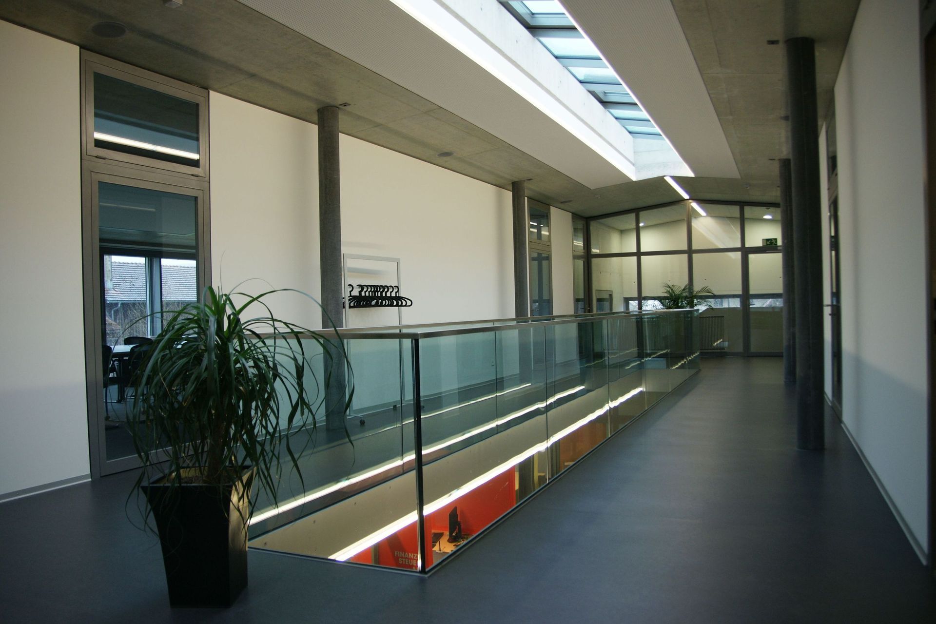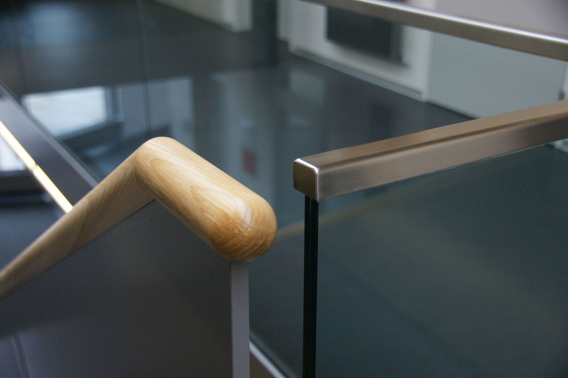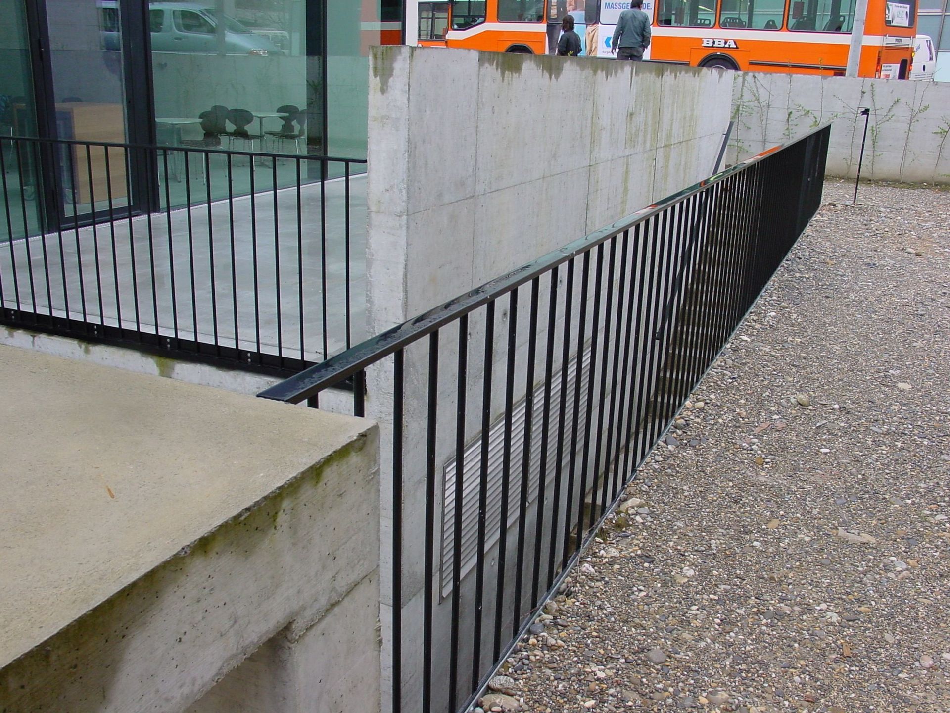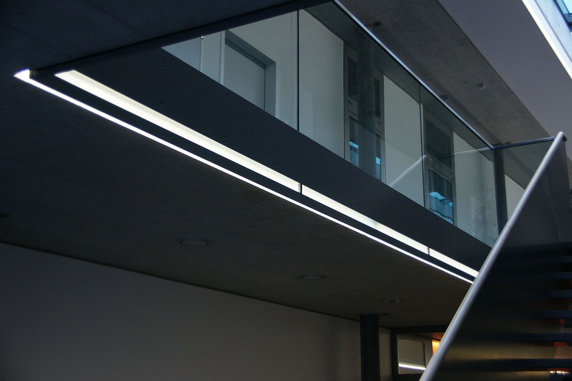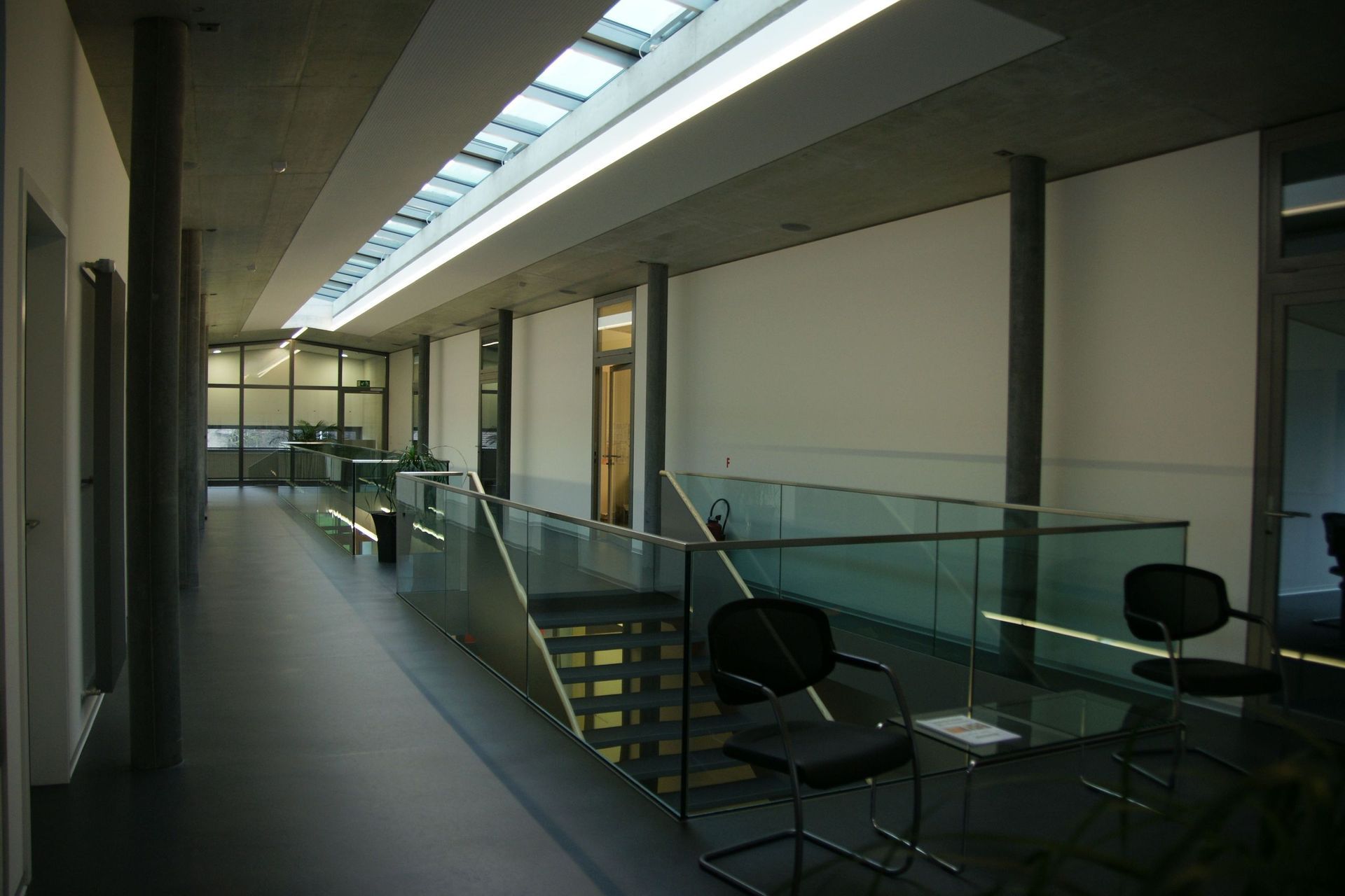Massnahme: Glasgeländer und Stahltreppe